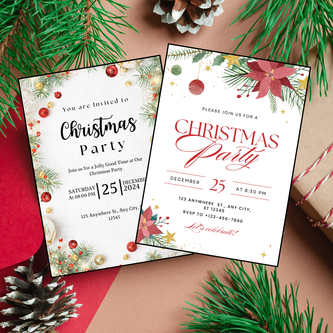 ✨ Christmas Invitations – Kick off the celebration by inviting loved ones to your holiday feast in style! These customizable invitations set the tone for a memorable gathering, whether it’s a cozy Christmas lunch or an elegant evening dinner.