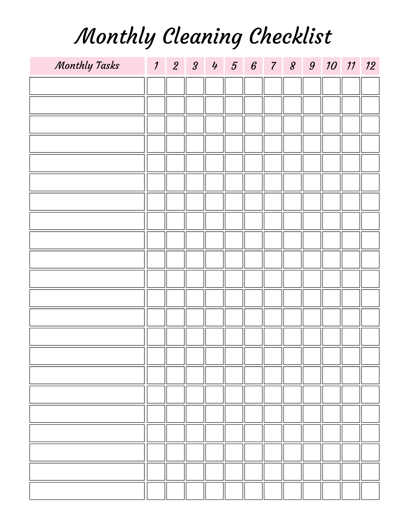 - Monthly Deep Cleaning List: Never forget those seasonal deep cleans, like washing windows or cleaning out closets.