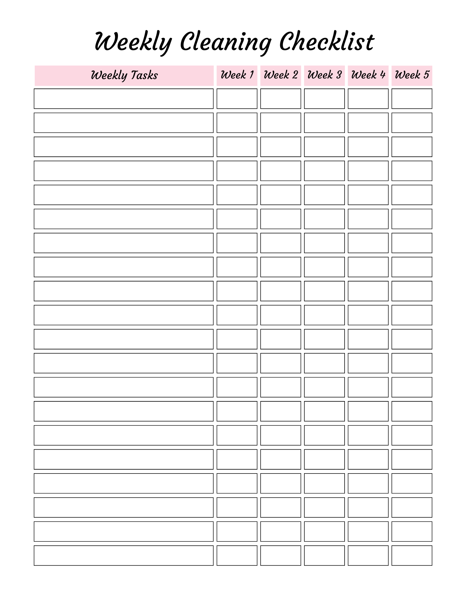 - Weekly Cleaning Schedule: Plan your weekly chores, from bathroom scrubbing to dusting furniture.