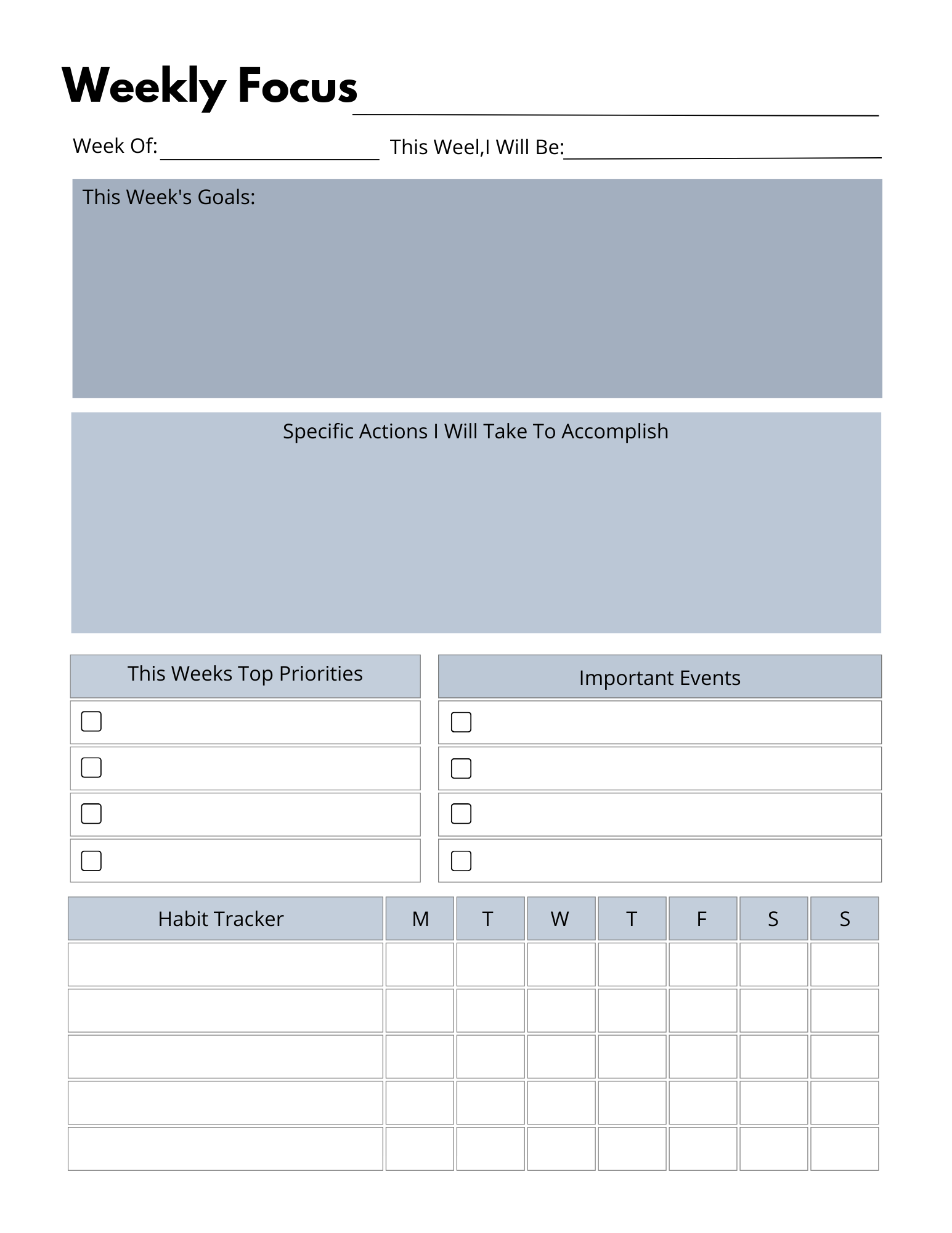 - Gratitude Practice: Use the gratitude and reflection sections to cultivate positivity and track your weekly progress.